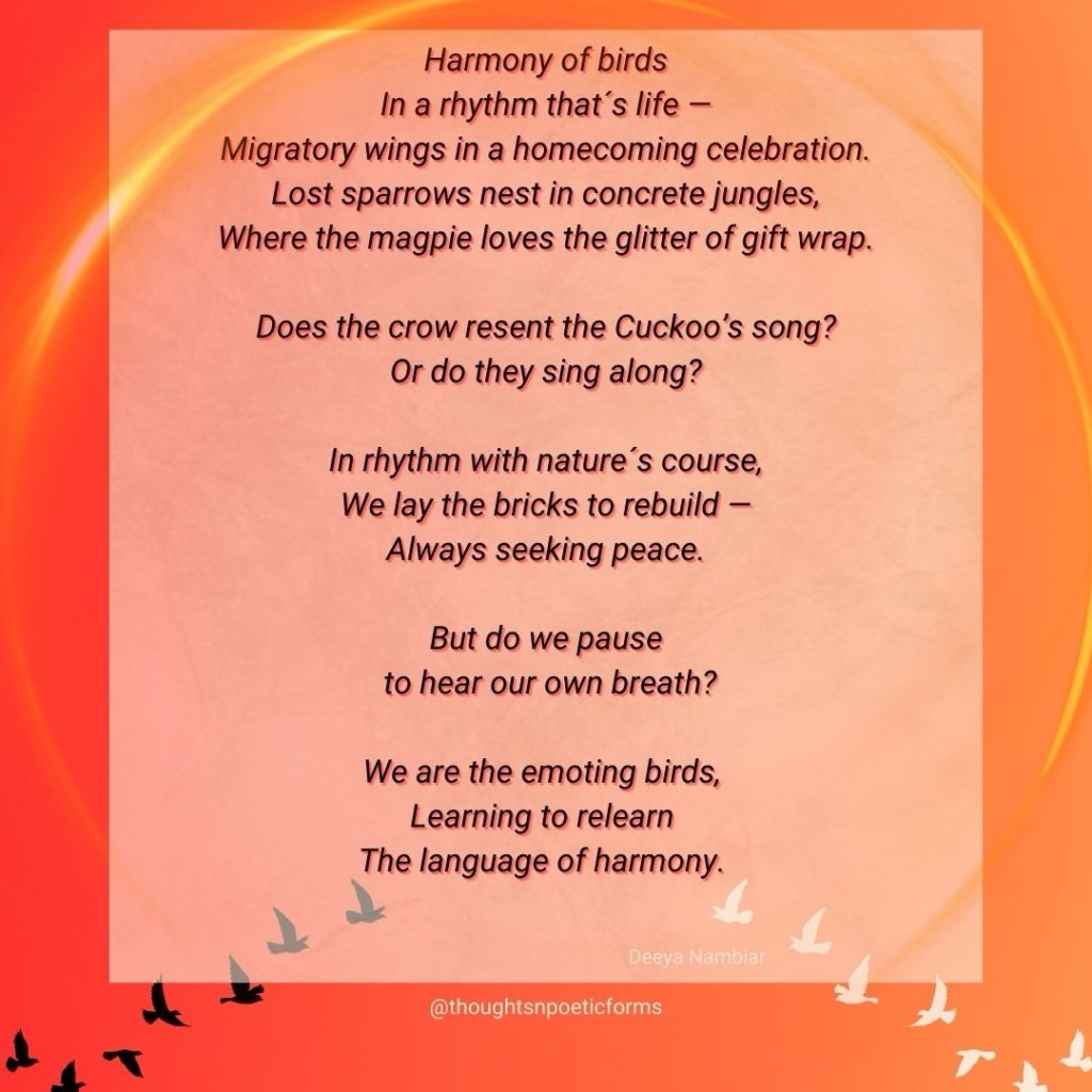 Harmony – We seek what we never lost, in the chorus of birds. We are birds, relearning the song.